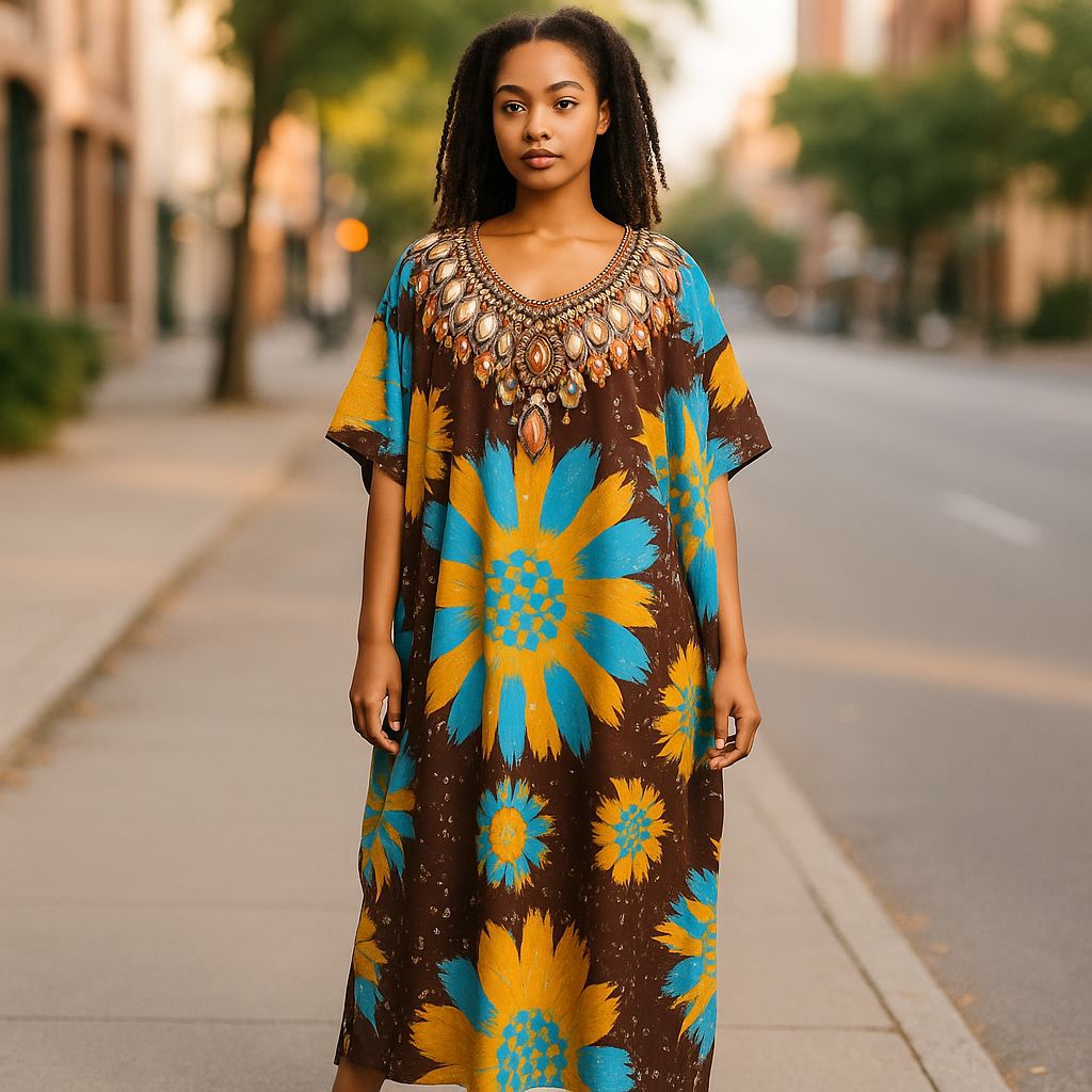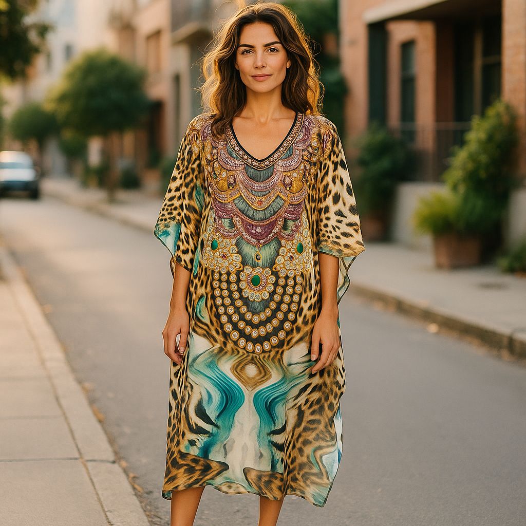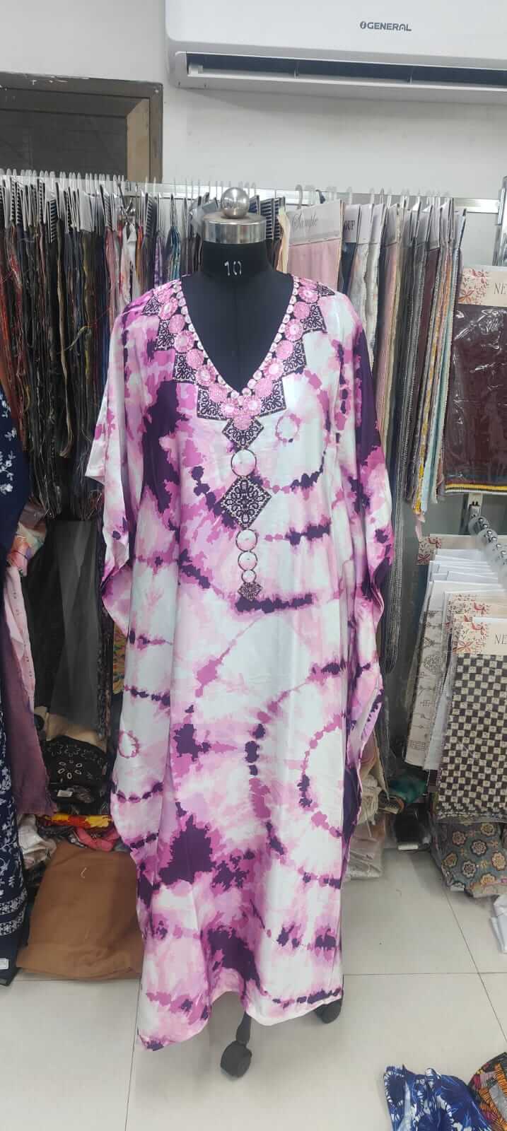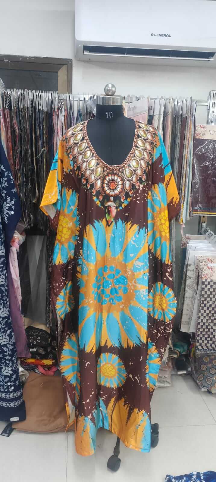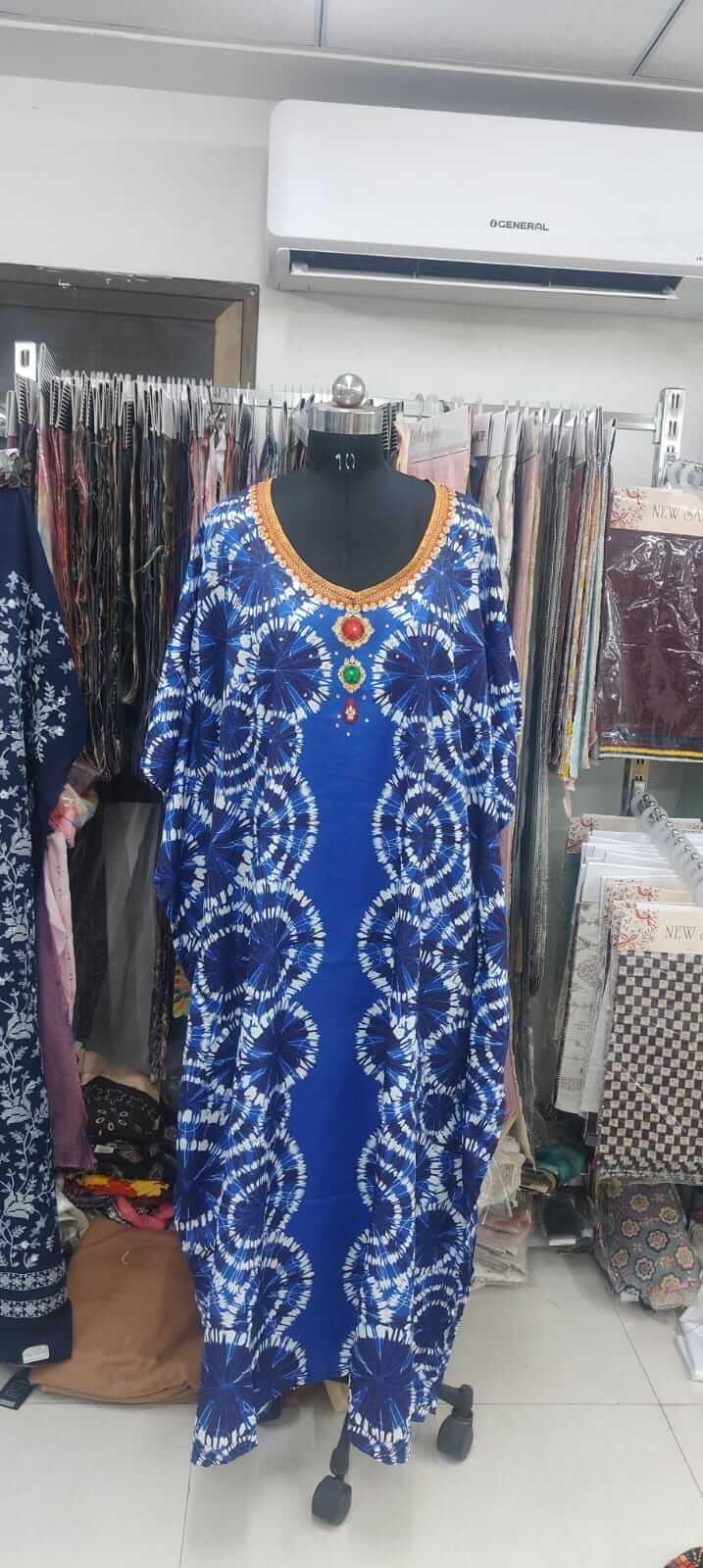 Fabric - Digital Silk Embroidery rayon kaftan available in m to 7 xl Uses - daily wear It is also available in free size