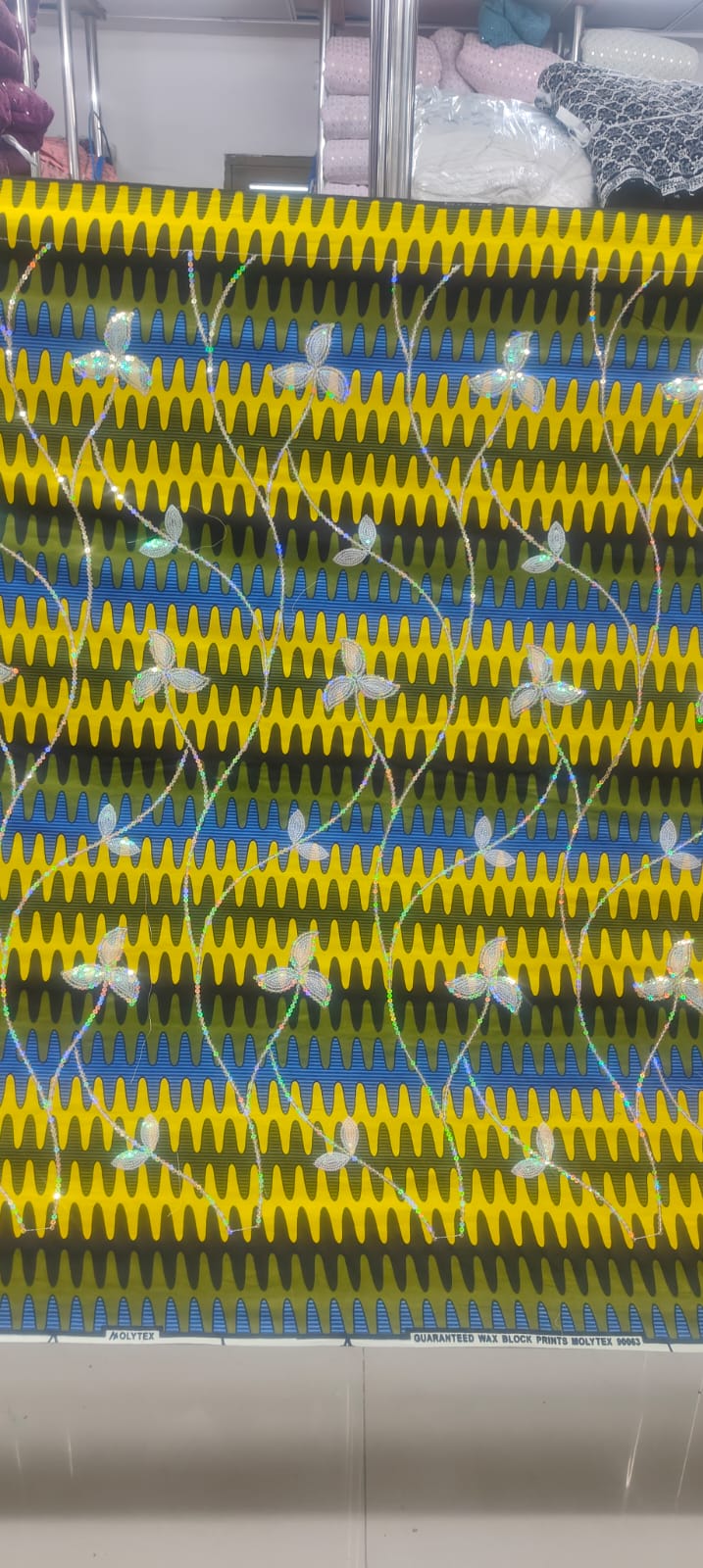 Cotton embroidery lace is a soft, breathable fabric made from natural cotton, featuring delicate embroidered patterns in a lace style. It combines comfort with elegance, making it ideal for adding decorative borders or panels to garments like abayas, kaftans, dresses and kurtis. It gives a light, feminine and refined finish to any outfit.