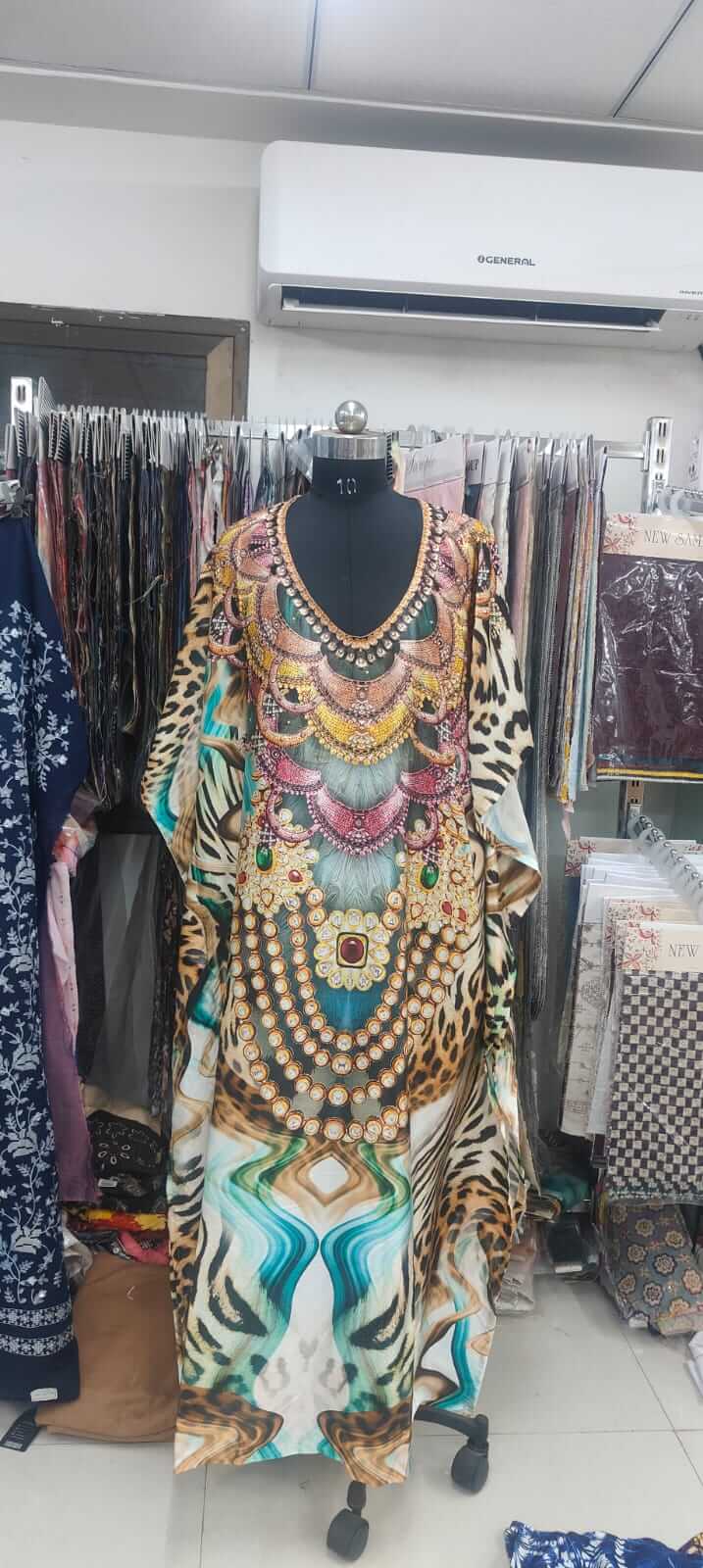 Fabric - Digital Silk Embroidery rayon kaftan available in m to 7 xl Uses - daily wear It is also available in free size